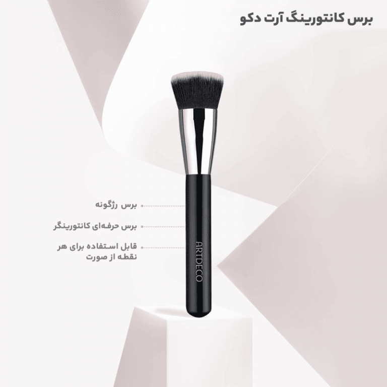 براش حرفه ای کانتورینگ آرت دکو محصولی از برند آلمانی آرت دکو است. برای زاویه سازی و متعادل سازی صورت از روشی به نام کانتورینگ استفاده می شود که این روش نیازمند به براش مخصوص کانتورینگ دارد.