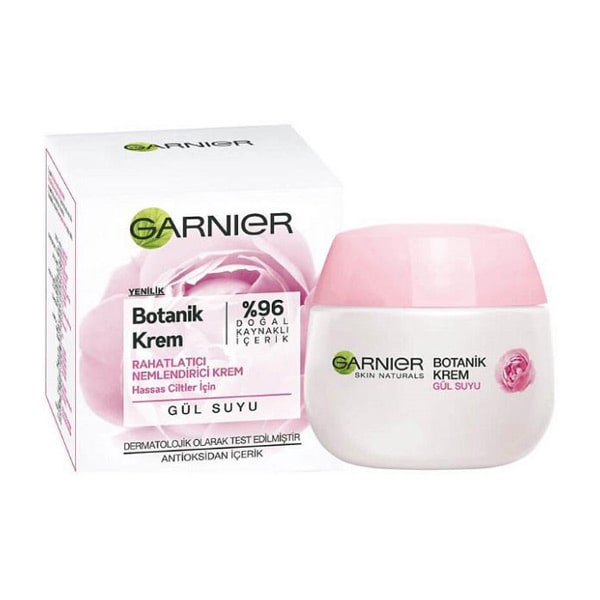 کرم مرطوب کننده پوست با عصاره گل رز گارنیر به نام بوتانیکال Botanical است که 96% فرمولاسیون این محصولات از مواد طبیعی می باشد. این کرم همچنین التهابات پوستی و آفتاب سوختگی را التیام می بخشد و مانع از اثر اشعه مضر UV بر روی پوست شده و ضد چروک و پیری می باشد.