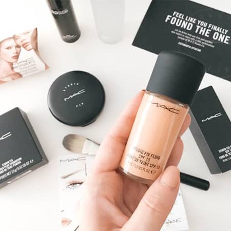 کرم پودر استودیو فیکس مک M.A.C studio fix foundation SPF15 را به طور یکدست و منظم بر روی سطح پوست پخش کنید و به خوبی ماساژ دهید تا جذب پوست شود. این محصول با انواع پوستها سازگاری دارد و همه خانمها میتوانند از کرم پودر برند مک، استفاده کنند.