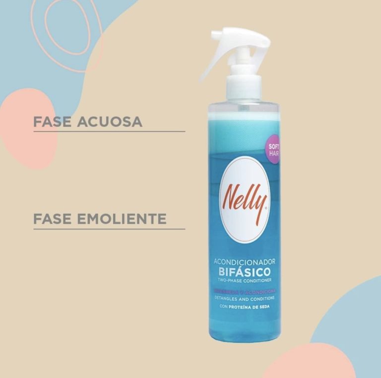 اسپری دوفاز آبرسان نلی ساخت اسپانیا بوده و دارای دو فاز آبرسان و سیلیکون می باشد. فاز آبرسان دارای خاصیت نرم کنندگی و مواد پروتئینه می باشد که به درون موها نفوذ و ساقه مو ها را تغذیه و ترمیم و از اکسیده شدن موها در مقابل اشعه مضر خورشید محافظت می کند. مواد نرم کننده موها را در برابر گرمای خشک سشوار محافظت کرده و باعث تقویت سطح مو می گردد. فاز سیلیکون که به شکل کف می باشد باعث درخشانی، لطافت و نرمی در نتیجه آسان شانه شدن مو ها می شود و از سطح خارجی مو ها محافظت و از مو خوره جلوگیری می کند. اسپری دو فاز آبی رنگ Bifasico نلی اثر درمانی داشته و ترمیم کننده است.